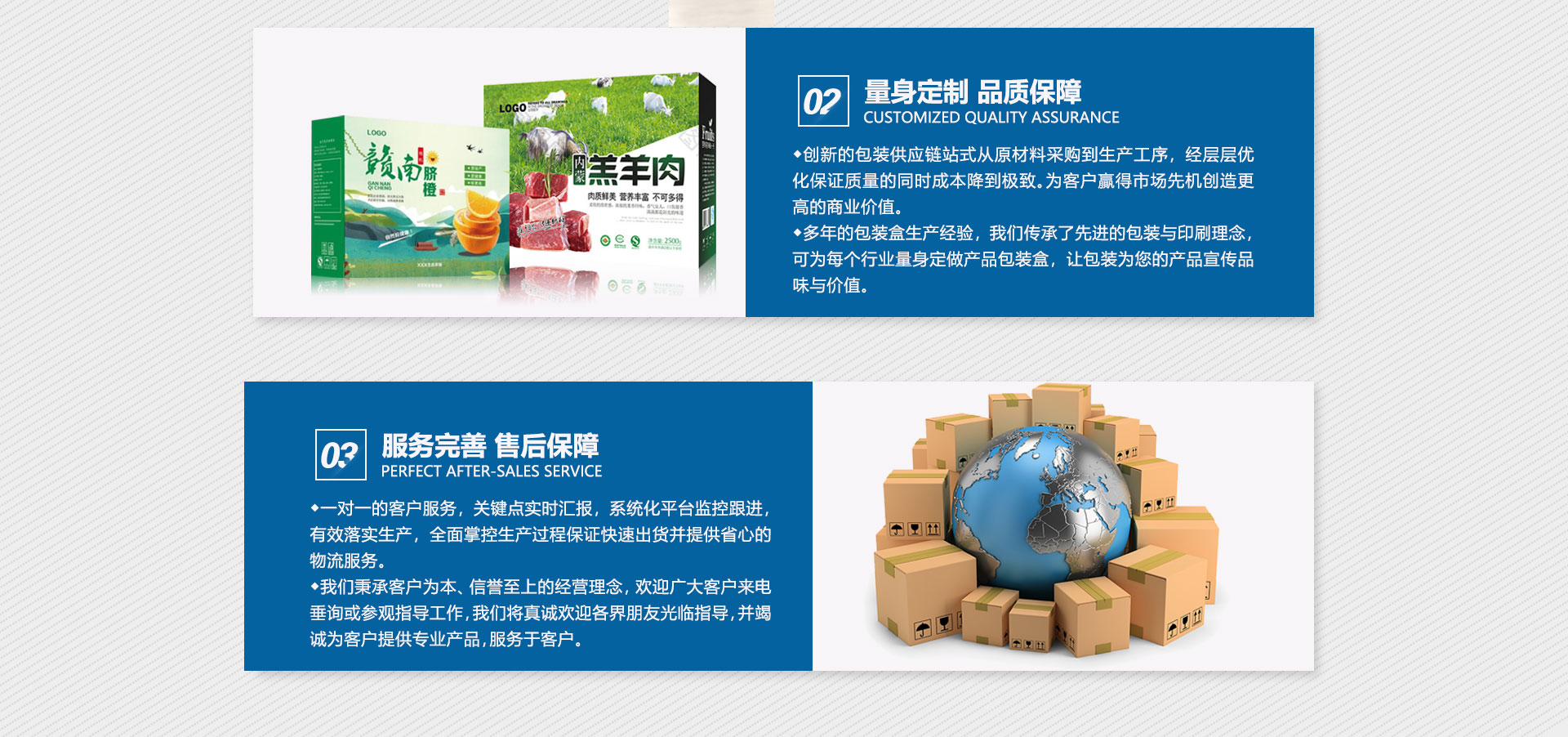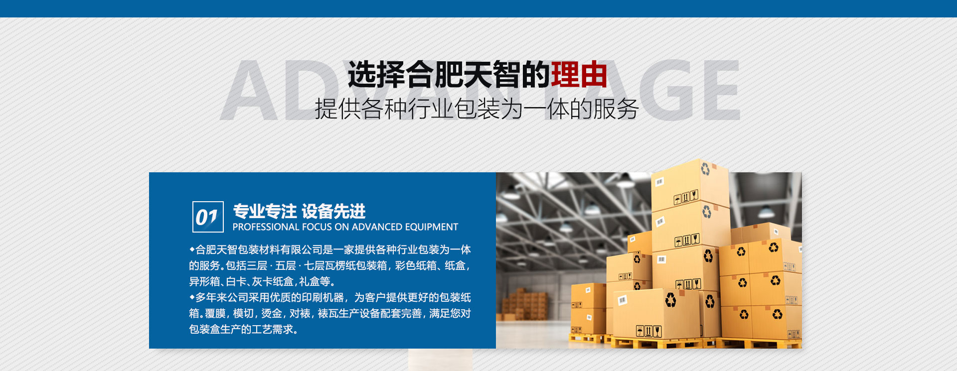 合肥天智包裝有限公司致力于包裝產(chǎn)業(yè)的變革,用國(guó)內(nèi)精湛的生產(chǎn)技術(shù)及工藝、科學(xué)的管理理念和良好的服務(wù),全力打造中國(guó)包裝行業(yè)的品牌。我們始終堅(jiān)持“誠(chéng)信是企業(yè)的生命,效益是我們的追求”經(jīng)營(yíng)理念,秉持“高質(zhì)低、準(zhǔn)時(shí)、至上”的宗旨,竭誠(chéng)為提供好的服務(wù)。公司一貫奉行以誠(chéng)信為本的原則,始終把的要求和滿(mǎn)意作為努力追求的目標(biāo),我們將一如既往,竭誠(chéng)為新老提供不錯(cuò)服務(wù),熱忱歡迎各界朋友光臨惠顧。合肥天智包裝有限公司制作生產(chǎn)各種規(guī)格紙箱,紙箱包裝,彩印紙箱,包裝紙盒,紙包裝箱,瓦楞紙箱,重型包裝紙箱,天智包裝致力于包裝產(chǎn)業(yè)的變革,用世界好的生產(chǎn)、世界好的生產(chǎn)工藝、世界好的管理理念和良好的服務(wù),全力打造中國(guó)包裝行業(yè)的品牌。公司在售前、售售后的過(guò)程中堅(jiān)持“以市場(chǎng)為導(dǎo)向,以顧客為中心”的經(jīng)營(yíng)理念,嚴(yán)格要求自己,為顧客提供好的產(chǎn)品和服務(wù),實(shí)現(xiàn)顧客的很好滿(mǎn)意度。